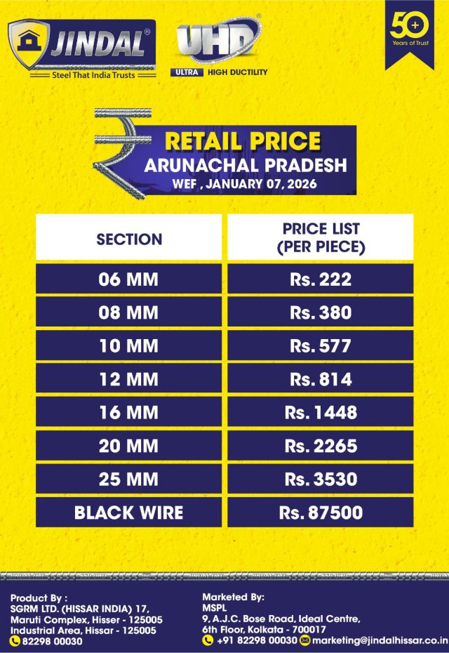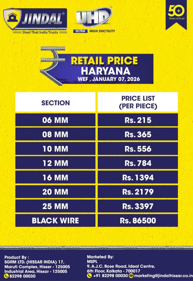 Finest quality TMT bars under the brand name JINDAL UHD. It is well trusted by Engineers, Architects, Building Professionals as well as Individual Home Builders.